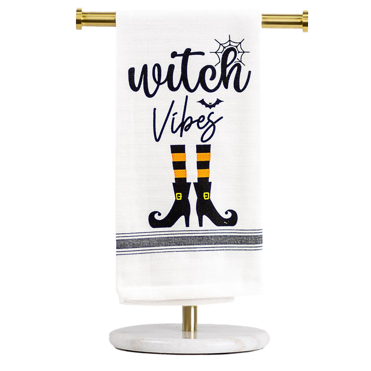 Laat de heksenpret maar beginnen in de keuken! Deze ‘Witch Vibes’ theedoek van Viv! Christmas komt rechtstreeks uit Amerika en is perfect voor iedereen die dol is op Halloween en heksen. De katoenen keukendoek is versierd met een vrolijke print van zwarte heksenlaarzen, gestreepte sokken, een spinnenweb én een vleermuis – precies wat je nodig hebt voor de juiste spooky sfeer.