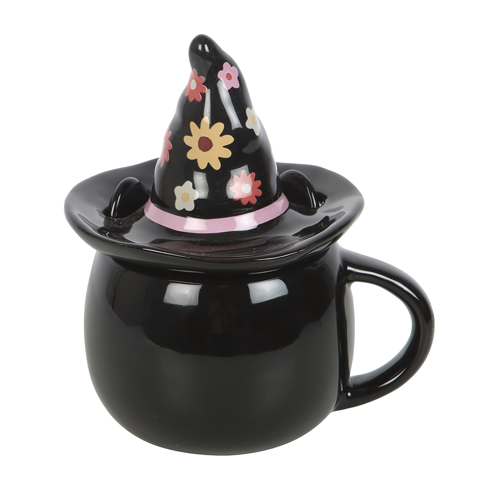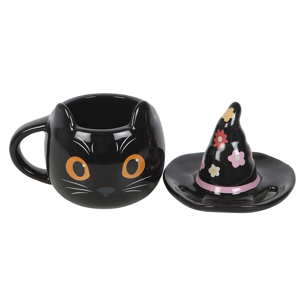 Voeg een vleugje magie toe aan je favoriete drankje! Deze betoverende mok in de vorm van een zwarte kat is een must-have voor elke kattenliefhebber met een zwak voor Halloween. Gemaakt van keramiek en voorzien van een deksel in de vorm van een heksenhoed — versierd met een kleurrijk bloemenpatroon — houdt hij je drankje lekker warm tijdens lange, knusse herfstavonden (of gewoon om mee te pronken op je aanrecht).