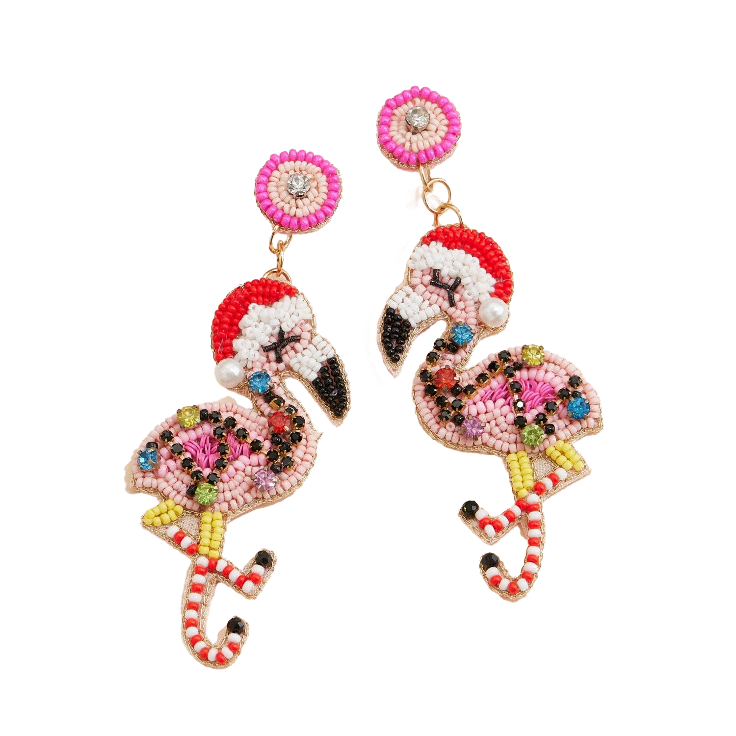 Met hun feestelijke kralen, vrolijke kleuren en een vilten achterkant voor extra comfort zijn deze lichtgewicht oorbellen dé eyecatcher voor jouw kerstoutfit. Of je nu een kerstfeest op het strand fantaseert of een origineel kerstcadeautje zoekt voor die vriendin die dol is op flamingo’s: deze oorbellen stelen gegarandeerd de show!