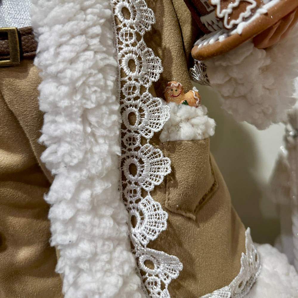 Met zijn hoogte van 46 cm is hij een echte blikvanger op tafel, in de vensterbank of als warme binnenkomer in de hal. Zijn rustige bruintinten passen perfect binnen het geliefde 'Frosted Gingerbread' thema en vormen een stijlvol alternatief voor de klassieke kerstkleuren. Combineer hem met bijpassende gingerbread huisjes of bruine accenten voor een sfeervol tafereel met een knipoog naar Santa’s bakkerij.