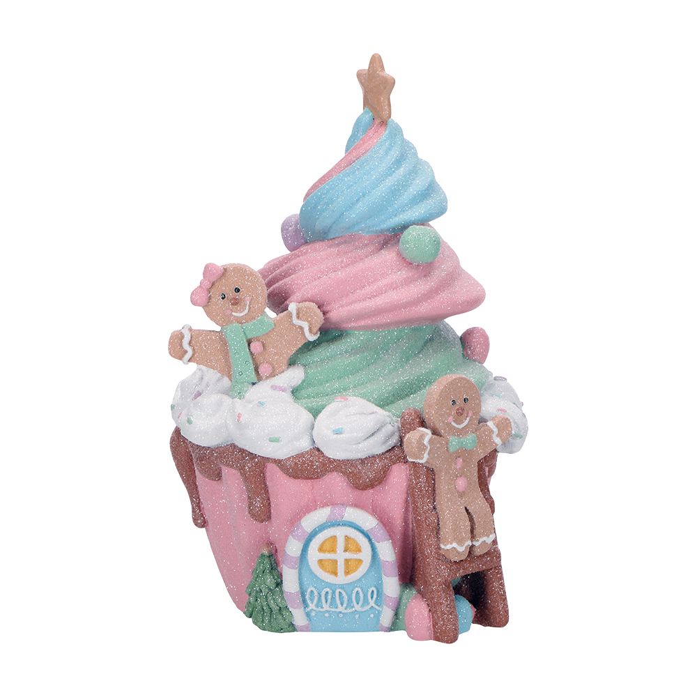 Welkom in het lekkerste huisje van de straat! Dit pastel huisje van Viv! Christmas lijkt recht uit een Candyland-dorpje te komen – met een torentje van gespoten ijs, glitter details, slagroomtoefjes én vrolijke gingerbread poppetjes die je begroeten bij de deur.