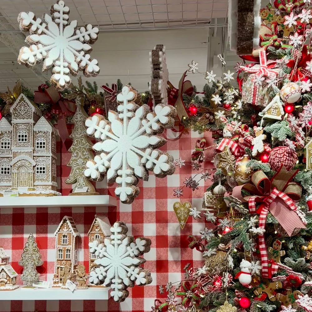Past in een klassieke 'Santa's Bake Shop' gingerbreadboom met rood, een rustige 'Frosted Gingerbread' styling met neutrale tinten, of als warme tegenhanger in een roze gingerbread-thema.