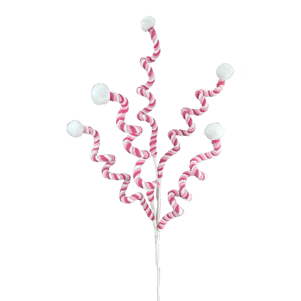 Een knipoog naar zuurstokken, sneeuwballen én kerstsnoep — allemaal in één heerlijke tak. Deze speelse chenille kersttak van Viv! Christmas is opgebouwd uit vrolijk gekrulde spiralen in roze en wit, afgemaakt met pluizige witte pompons die doen denken aan vers gevallen sneeuw.